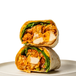 Buffalo Chicken Tenders, Spinach & Arugula, Shredded Carrots, Cheddar Cheese, Red Onions, Scallions, Chipotle Ranch.