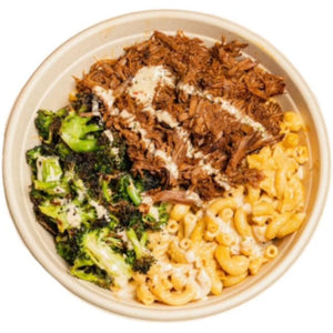 Chipotle Mac n' Cheese, Broccoli, Braised Brisket and a side of Chipotle Ranch.